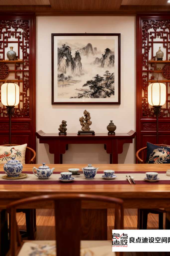 這種新中式格調,真的比一味堆砌古典元素要聰明太多。它營造的是一種心境,讓你愿意慢下來,好好喝一杯茶。對稱平衡的構圖里,藏著無數細節值得玩味,每次看都有新發現。