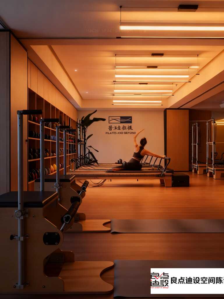 治愈系天花板!木色+燈帶的普拉提館軟裝設計,連儲物柜都長在審美上!