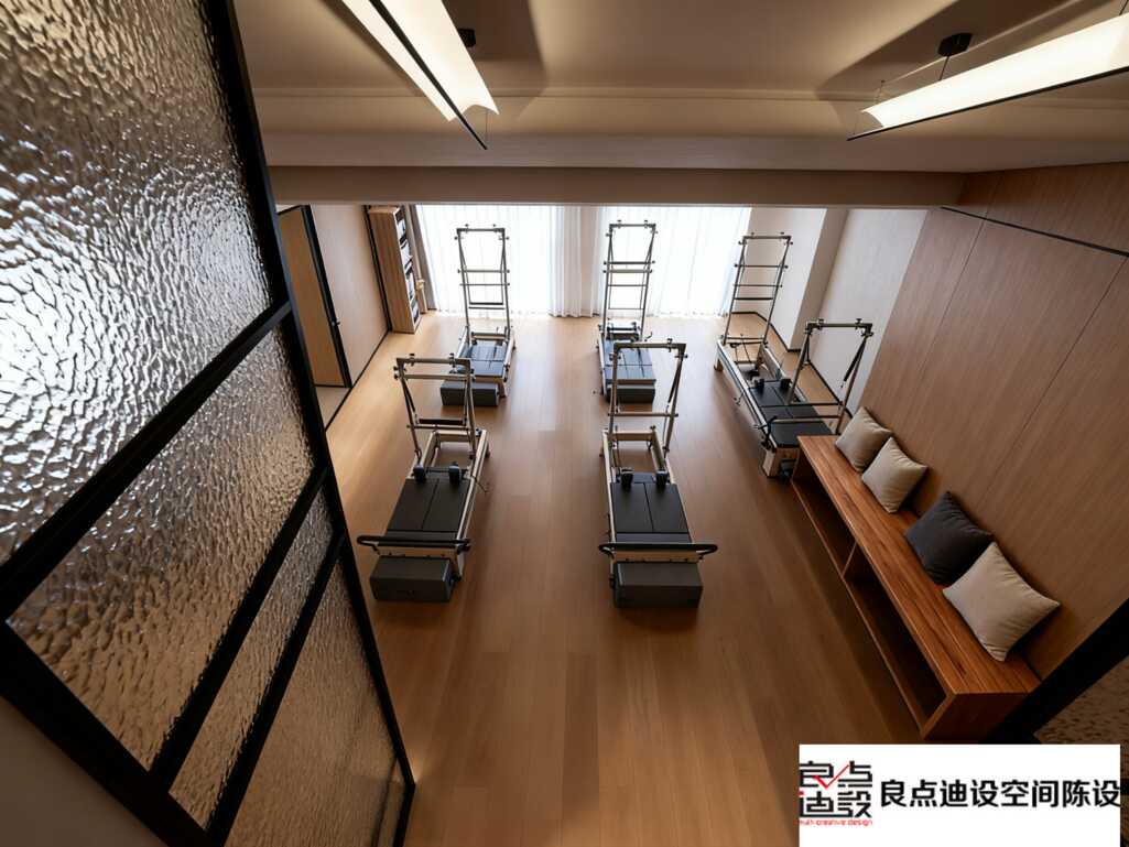 絕了!幾何墻+玻璃隔斷的普拉提教室長這樣,拍照鍛煉兩不誤!